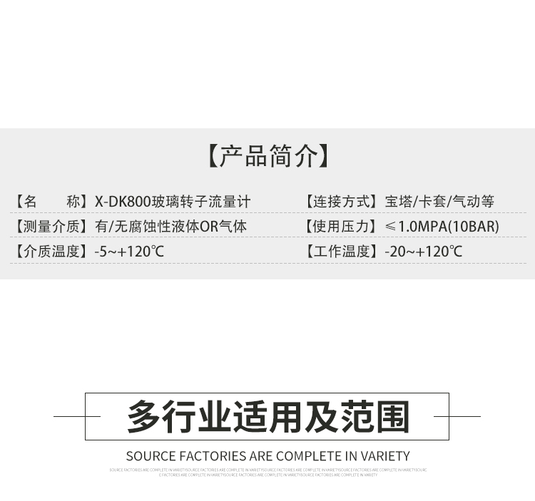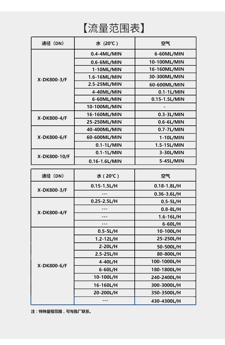 8.       一般流体的测量选用DK800-()型,有腐蚀性流体的测量选用DK800-()F型玻璃转子流量计。