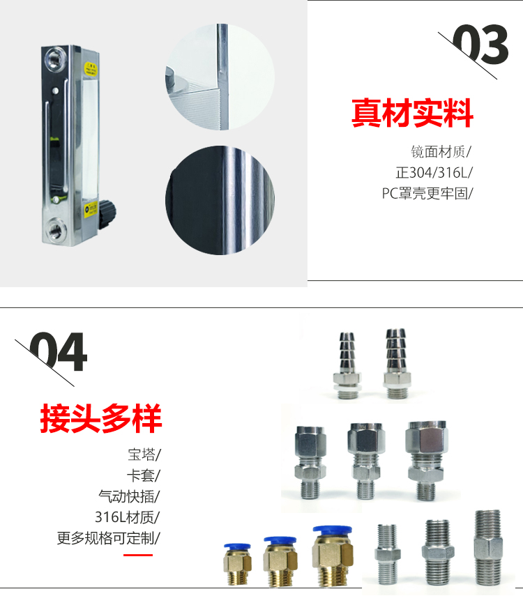 即可方便更换锥管和浮子,连接方式采用软管或金属管连接。