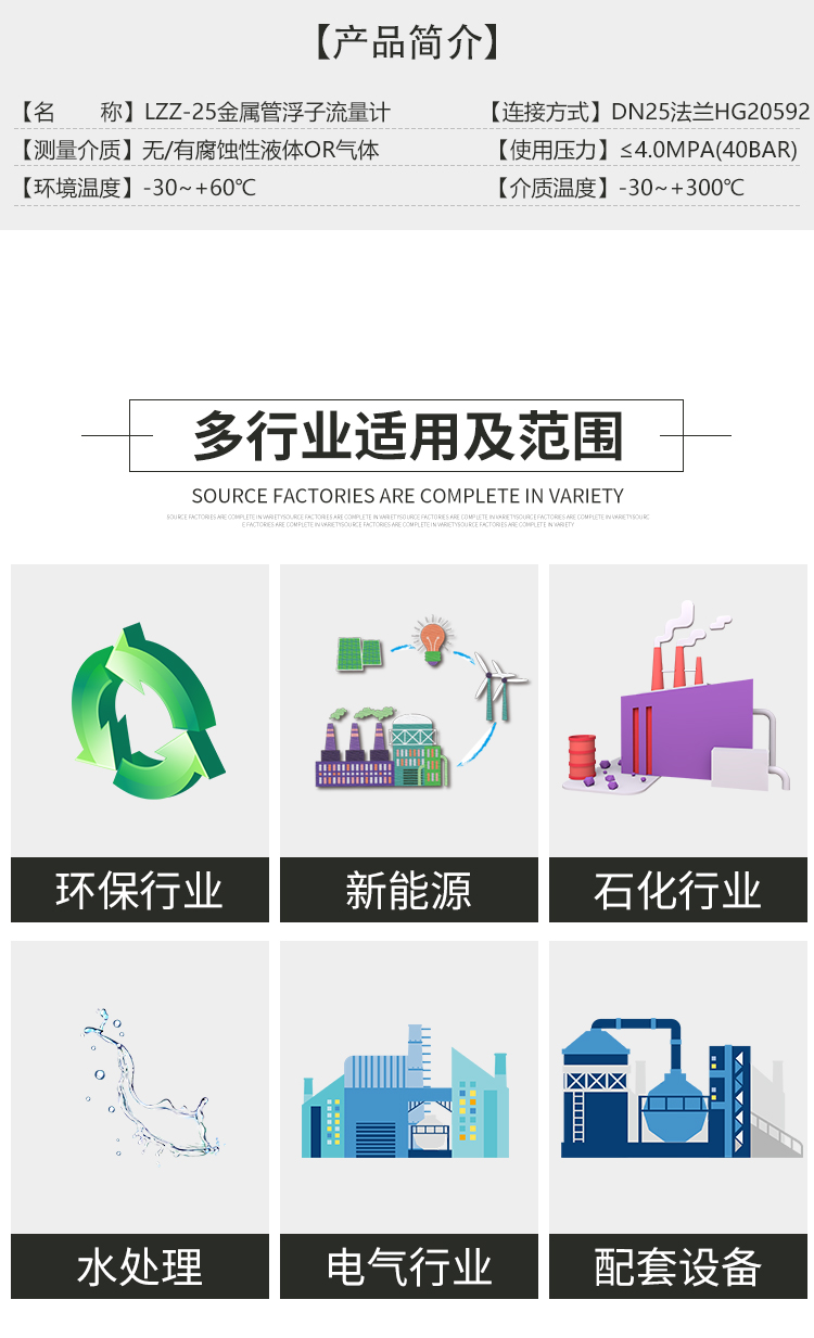 LZZ-50金属管浮子流量计适用范围广。广泛应用于国防、化工、石油、冶金、电力、环保、医药等领域的液体。